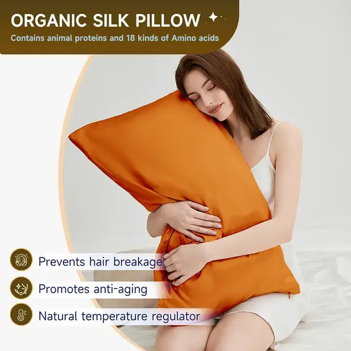 Indulge in luxury with the 100% Natural Mulberry Silk Pillow Case, crafted from premium 19Momme silk for unparalleled softness and comfort. This exquisite pillowcase, featuring pure silk on both sides and a discreet hidden zipper, promotes smoother skin and hair by reducing friction and retaining moisture. Perfect for all seasons, its breathable, hypoallergenic fabric is gentle on sensitive skin and helps regulate temperature for a restful sleep. Available in standard, queen, and king sizes, this elegant pillowcase adds a touch of sophistication to any bedroom decor. Machine washable with proper care, it’s a durable, eco-friendly choice for health-conscious sleepers. Elevate your bedding with this anti-aging, luxurious silk pillowcase.