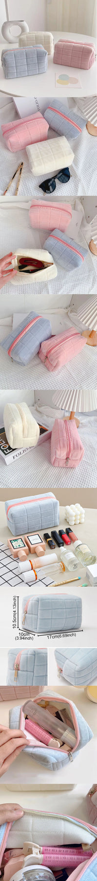 Cute Plush Makeup Bag for Women Portable Travel Zipper Makeup Organizer Handbag Stationery Pencil Case Make Up Pouch Storage Bags