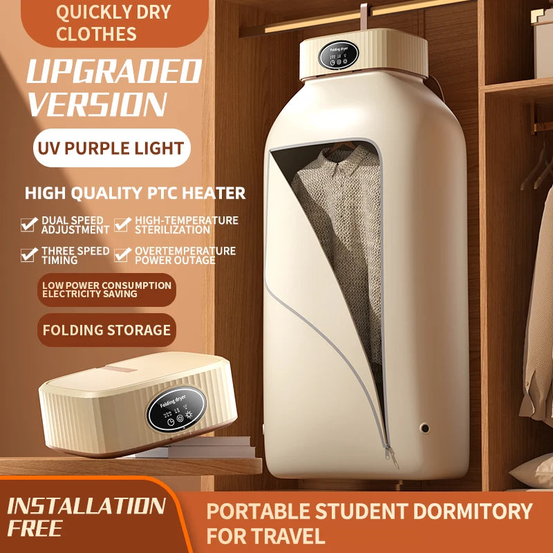 Discover the ultimate solution for efficient laundry with the Shopify Foldable Electric Clothes Dryer – a multifunctional cabinet floor machine designed for apartment living. This compact, portable dryer combines advanced tumble drying technology with a space-saving foldable design, making it perfect for small spaces, dorms, RVs, or travel. With a powerful 850W-1500W motor, it dries clothes quickly, handling up to 10-13.2 lbs of laundry in as little as 15-20 minutes. Featuring multiple drying modes (cool, warm, hot, and air dry), smart timers, and fabric-care settings, it ensures gentle yet thorough drying for delicates, towels, and more. Energy-efficient and easy to store, this dryer is a cost-effective alternative to traditional machines, reducing utility bills while delivering professional results. Plug-and-play functionality requires no complex installation, and its sleek design complements any home. Revolutionize your laundry routine with this versatile, high-performance electric dryer today!