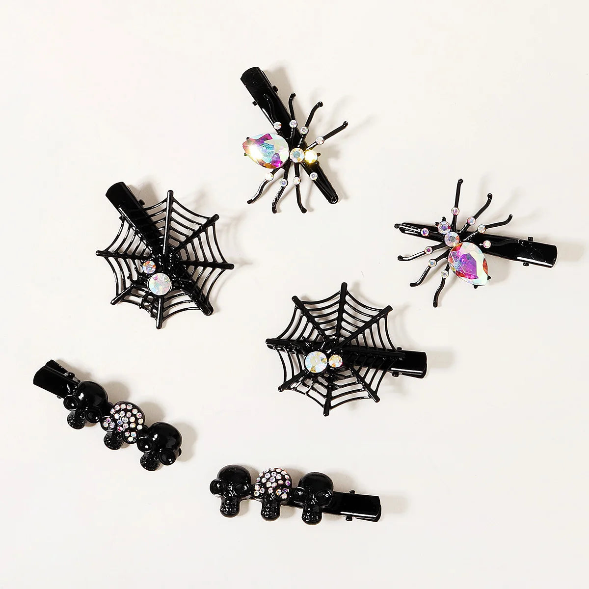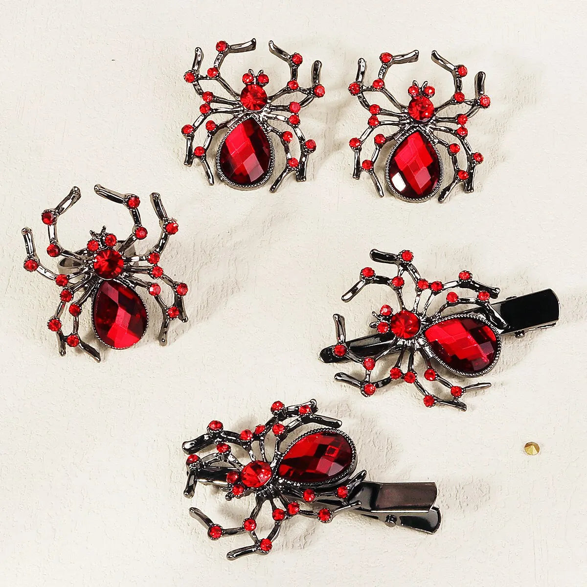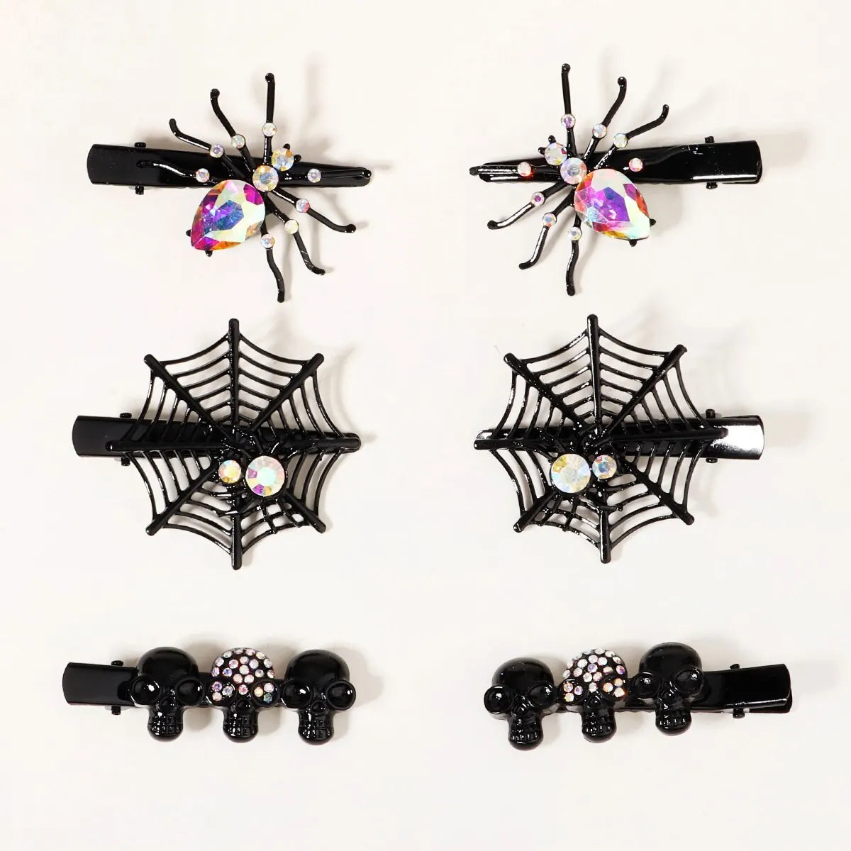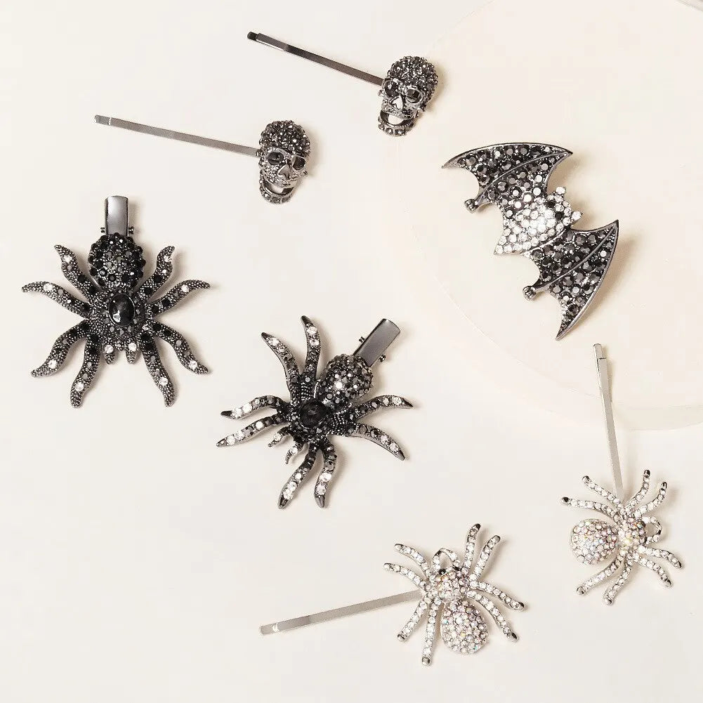 Gothic Punk Black Spider Animal Bat Halloween Skull Open Finger Ring Party Ring Earring Hair Clip Crown Tiara Hair Jewelry