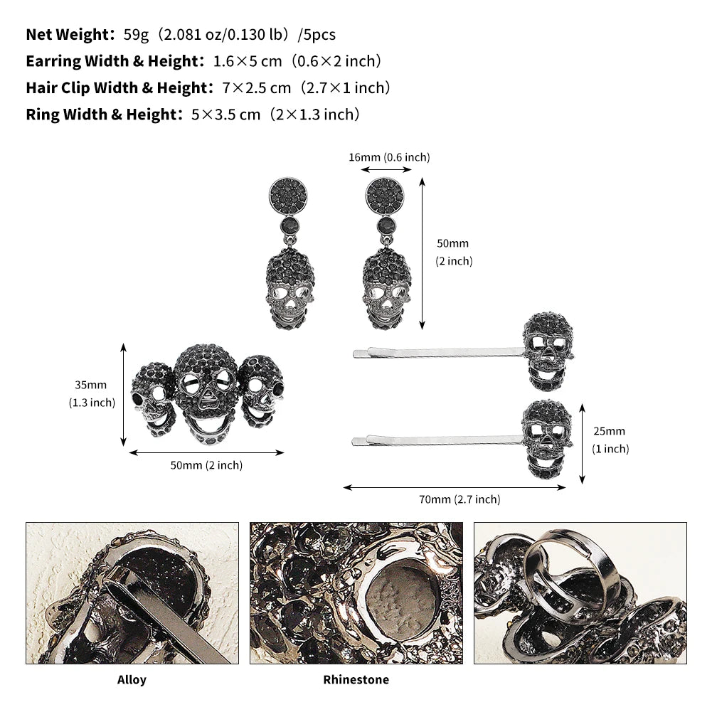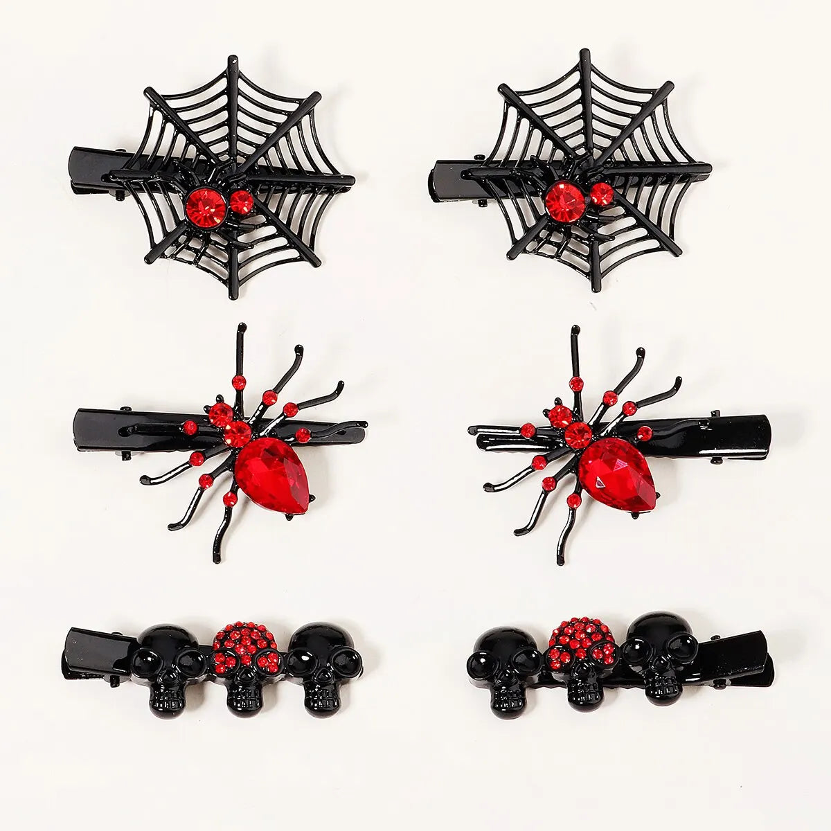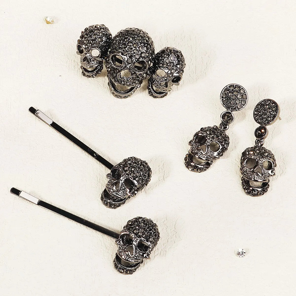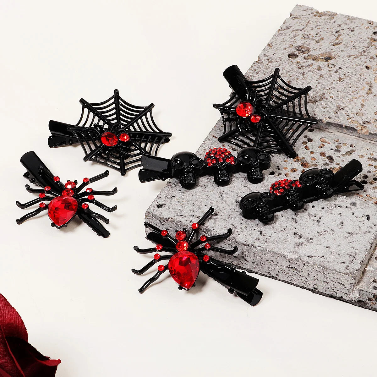Gothic Punk Black Spider Animal Bat Halloween Skull Open Finger Ring Party Ring Earring Hair Clip Crown Tiara Hair Jewelry