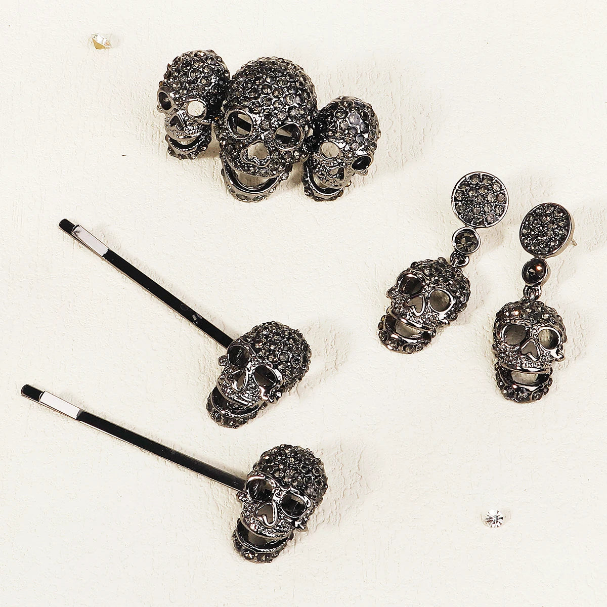 Unleash your inner gothic vibe with this Gothic Punk Black Spider Animal Bat Halloween Skull Open Finger Ring, Party Ring, Earring, Hair Clip, and Crown Tiara Hair Jewelry Set! Perfect for women embracing the spooky season or year-round alternative fashion, this versatile collection features bold designs inspired by Halloween, including black spiders, bats, and skulls. Crafted with high-quality materials, each piece—open finger ring, statement earrings, edgy hair clip, and dramatic crown tiara—adds a touch of punk flair to your wardrobe. Ideal for Halloween parties, cosplay events, gothic festivals, or everyday wear, these accessories effortlessly elevate your style with a dark, mysterious edge. The adjustable open ring ensures a comfortable fit, while the lightweight earrings and hair accessories are perfect for all-day wear. Make a statement at your next event or gift this set to a fellow gothic enthusiast for a hauntingly chic look. Shop now to complete your Halloween or punk-inspired outfit with these must-have jewelry pieces!