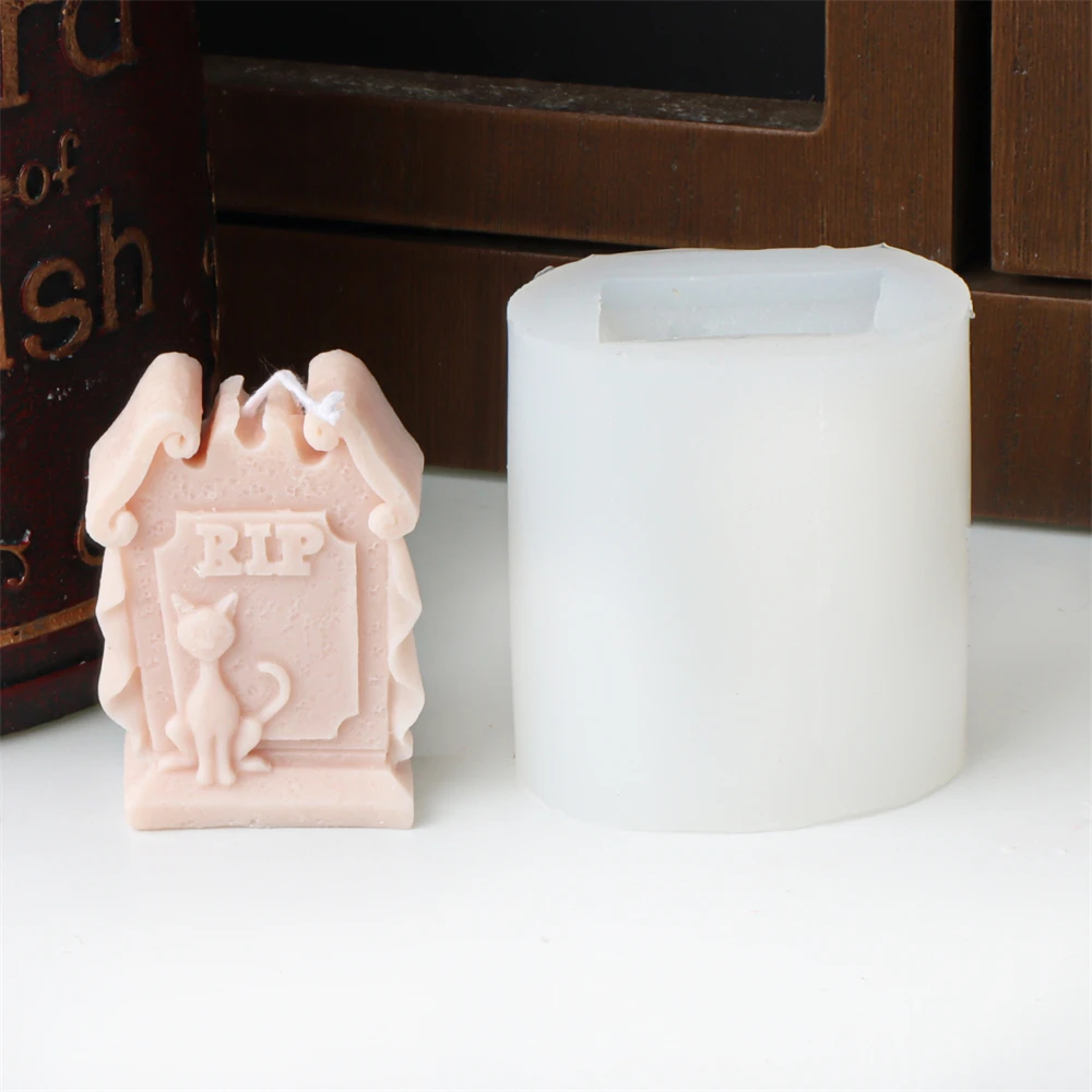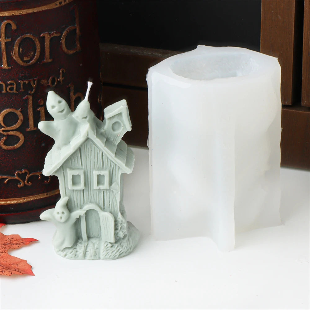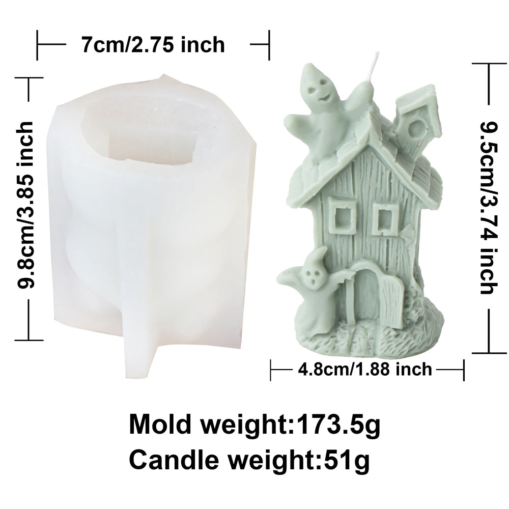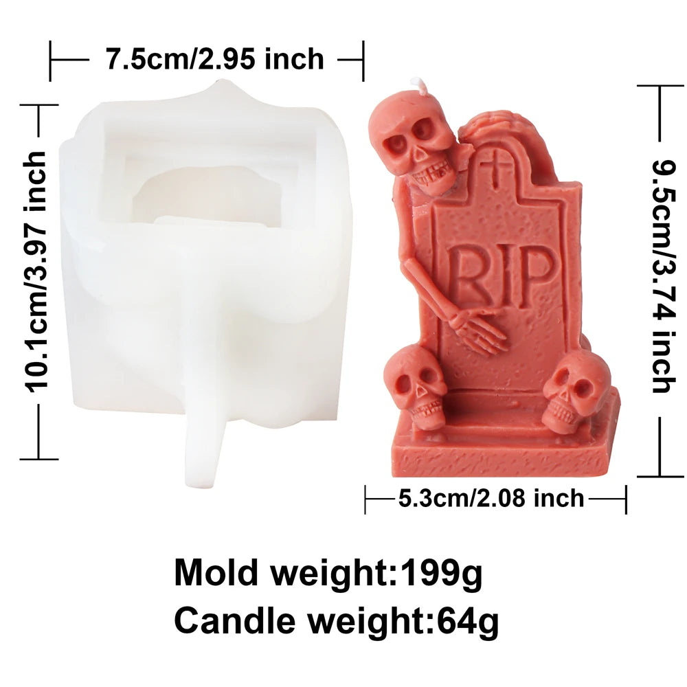 Halloween Skull Candle Mold 3D Haunted House Statues Resin Casting Craft Silicone Molds DIY Skull Tombstone Halloween Decor Mold