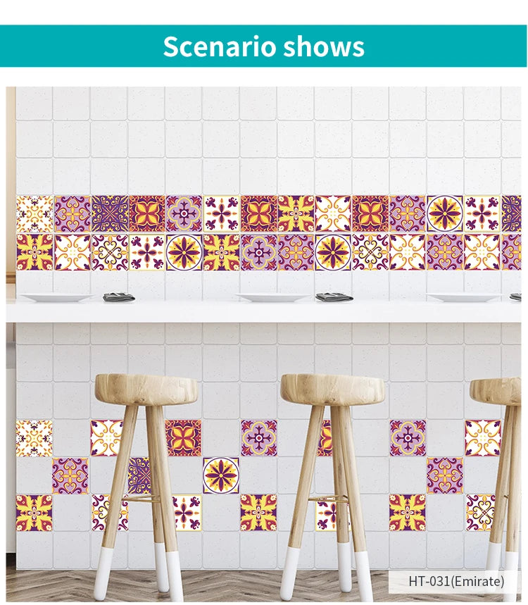 Revamp your space with our Waterproof Tile Stickers, featuring a stunning Retro Moroccan design that adds vibrant charm to any kitchen or bathroom. These self-adhesive vinyl decals are crafted from high-quality, eco-friendly materials, offering a durable, waterproof solution for easy home upgrades. Perfect for peel-and-stick wall decoration, these tile stickers are simple to apply and remove without damaging surfaces, making them ideal for renters or DIY enthusiasts. Transform backsplashes, floors, or walls with this stylish Moroccan-inspired wallpaper that blends functionality with timeless aesthetics. Shop now on Shopify for fast shipping and elevate your home decor effortlessly!