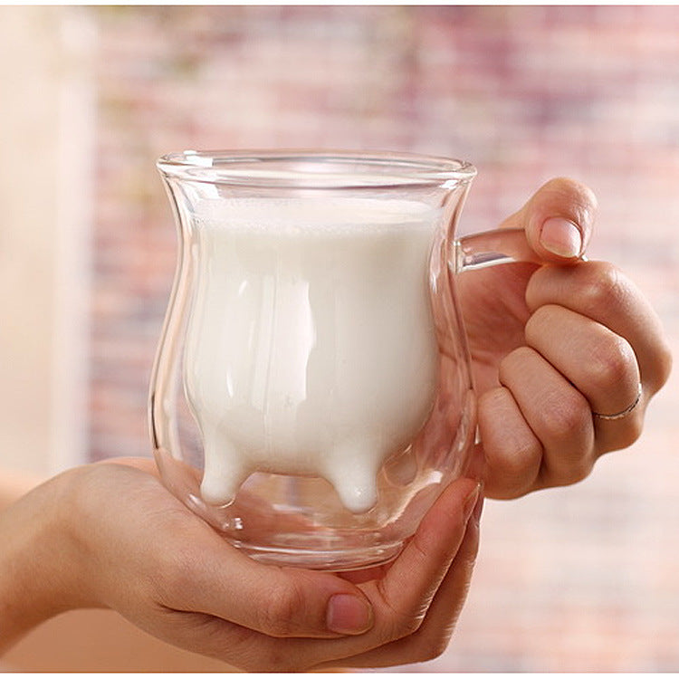 Cute double glass milk cup