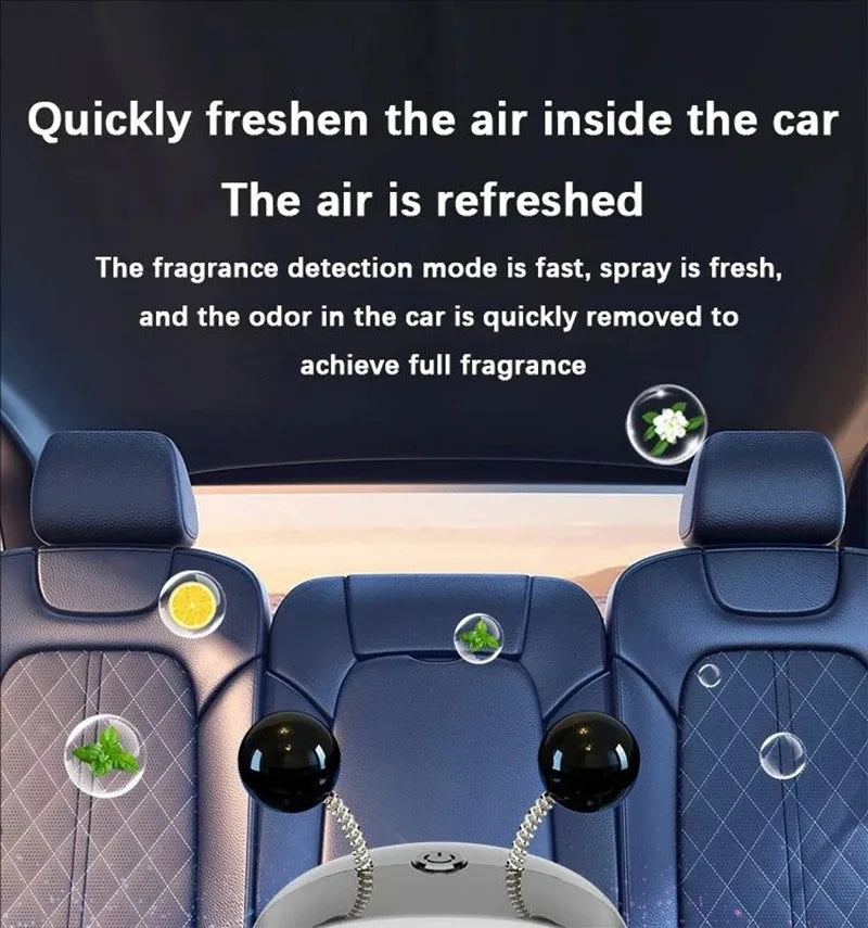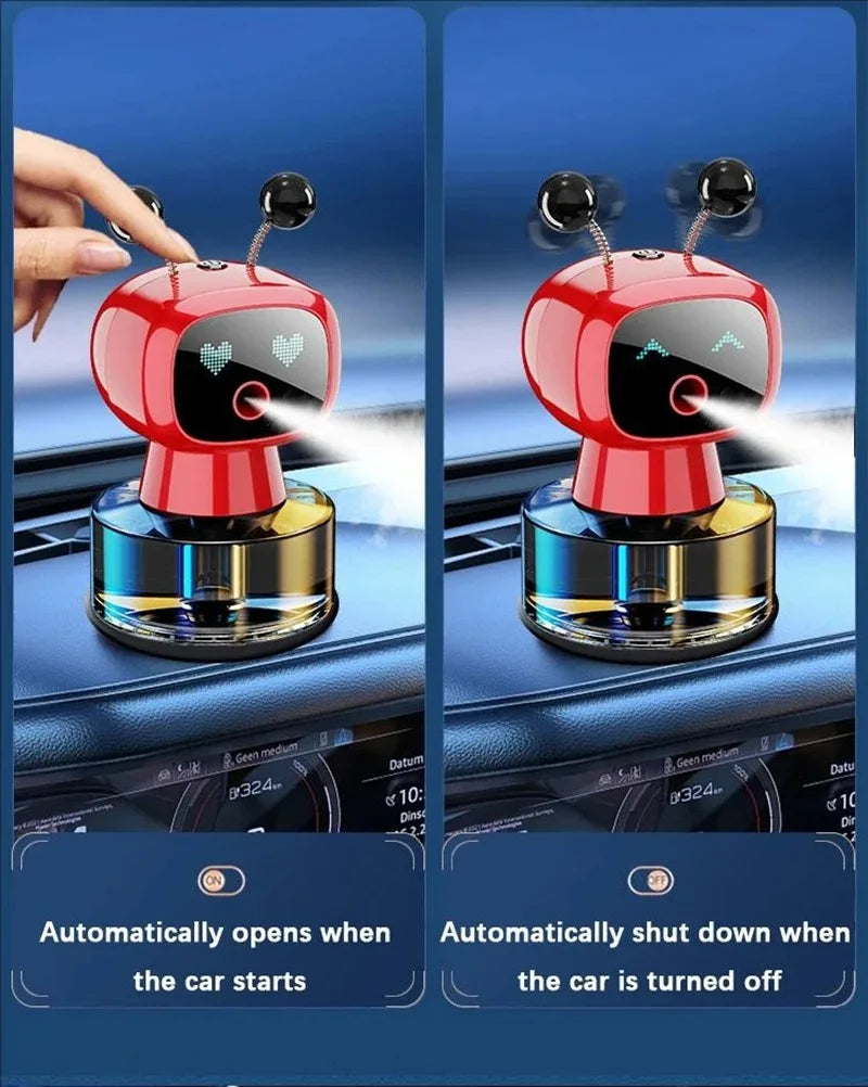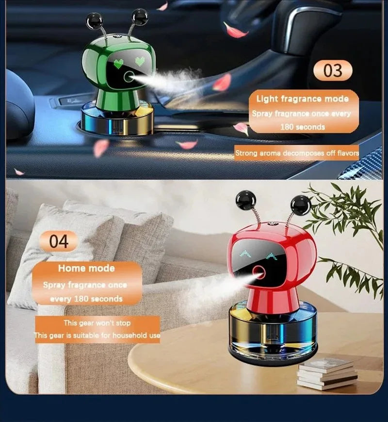 New Intelligent Robot Car Air Freshener: Auto Spray Perfume Diffuser eliminates odors & deodorizes. Enjoy fresh, long-lasting scents in your vehicle!
