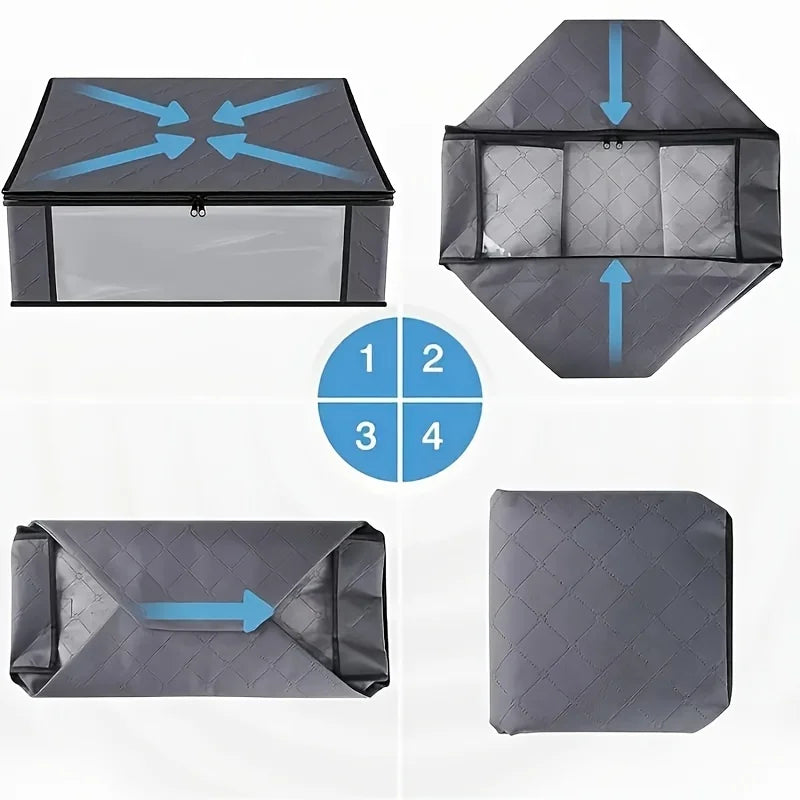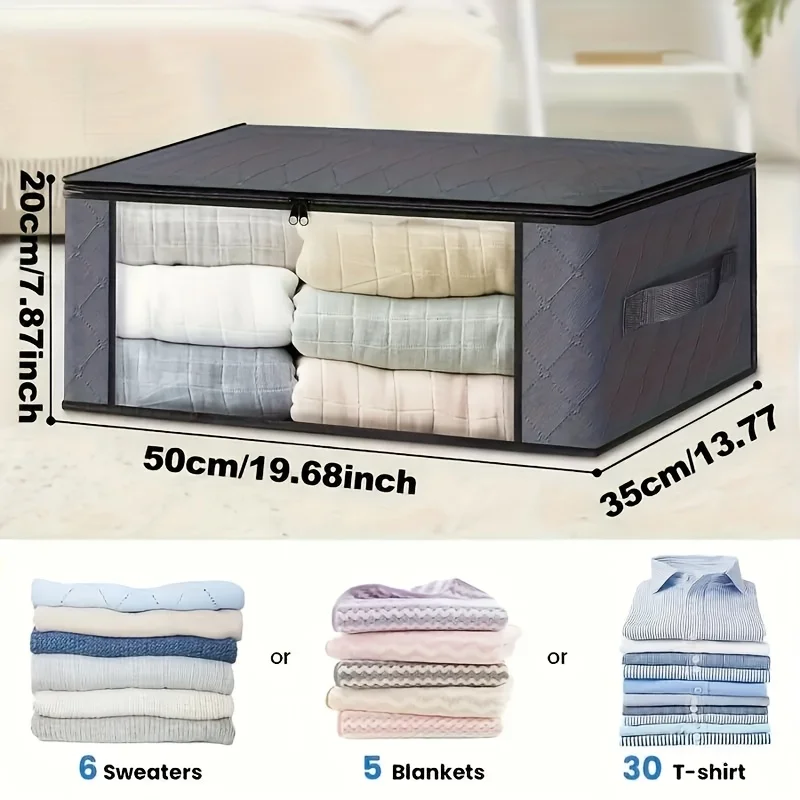 Declutter your home with these Non-Woven Fabric Storage Bins, the perfect solution for organizing clothes, bedding, toys, blankets, and more! Featuring large clear windows for easy content identification and sturdy zipper closures for secure storage, these foldable organizer boxes are designed for convenience and durability. Crafted from breathable, non-woven fabric, they protect your items from dust and moisture while maximizing space in closets, under beds, or on shelves. Ideal for small apartments, dorms, or seasonal storage, these versatile bins are lightweight, easy to fold, and built to last. Transform your home with these stylish, space-saving organizers and enjoy a tidy, organized space.