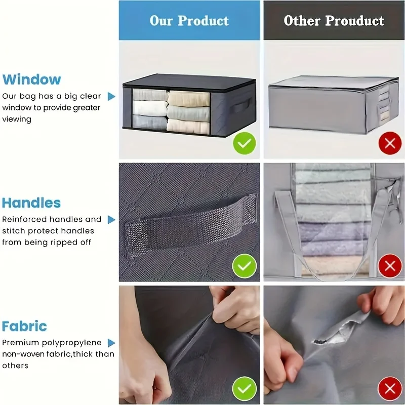 Organizer Boxes for Clothes Bedding Toys Blankets with Large Clear Windows