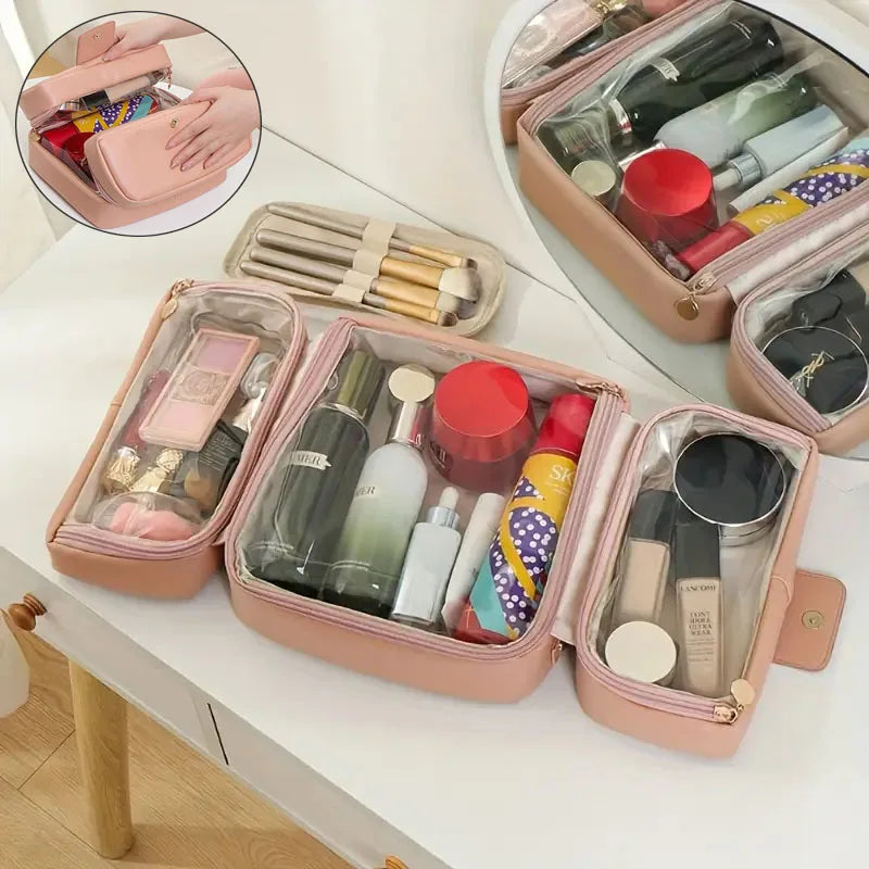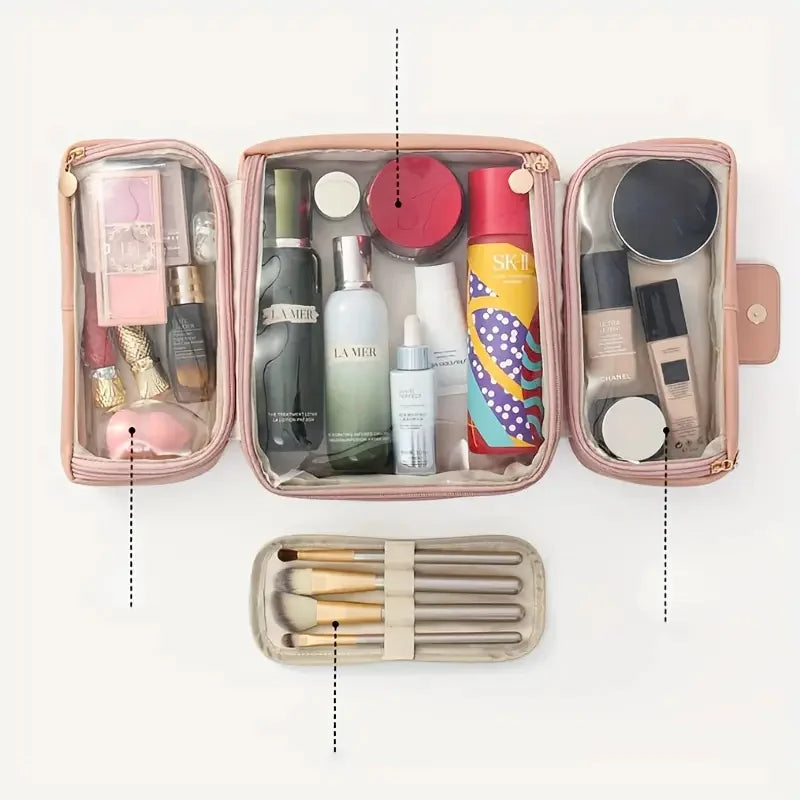 Portable Foldable Makeup Brushes Organizer – Cosmetic Bag with Multiple Compartments for Travel Toiletry Storage