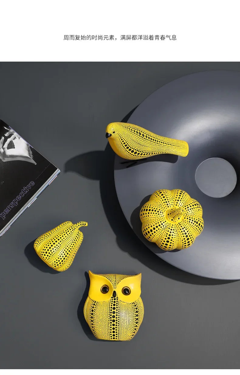 Add a vibrant touch of modern art to your space with our Pumpkin Kusama Yayoi Ornaments, inspired by the iconic polka dot style of Yayoi Kusama. This striking modern sculpture features a unique owl bird design, crafted to bring a playful yet sophisticated vibe to your home interior decoration, office arts, or special events like weddings and Christmas celebrations. Made with premium materials, this polka dot owl figurine blends contemporary aesthetics with artistic flair, making it a standout piece for living rooms, shelves, or desks. Perfect as a bold accent or a thoughtful gift for art enthusiasts, this sculpture captures Kusama’s whimsical charm. Elevate your decor with this eye-catching ornament – shop now to infuse your space with creativity!