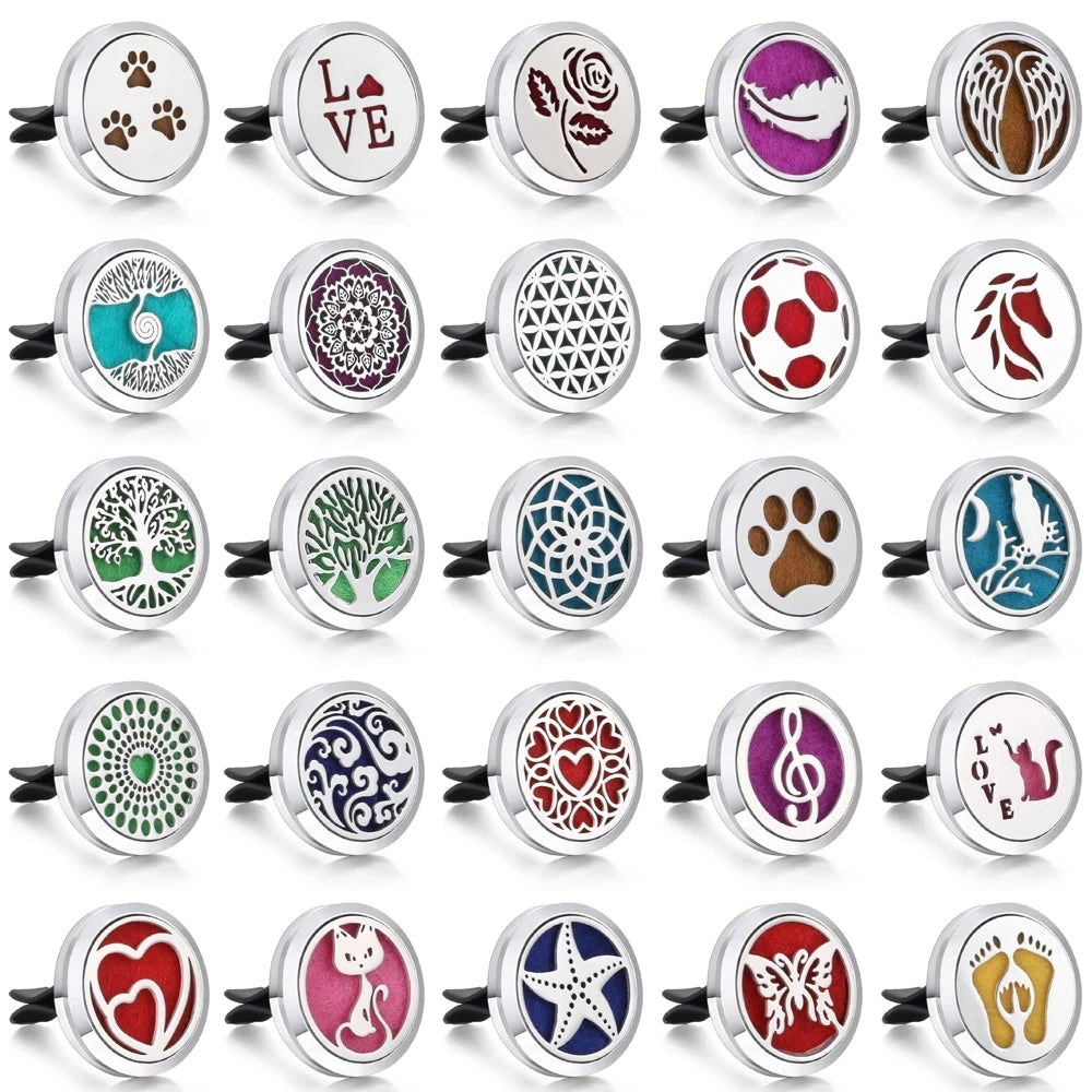 New Aromatherapy Car Perfume Diffuser is a stylish and functional essential oil diffuser designed to keep your car smelling fresh and inviting. Crafted from premium stainless steel, this locket pendant car freshener with a vent clip combines elegance with practicality, making it the perfect accessory for your vehicle. Simply add a few drops of your favorite essential oils (like lavender, peppermint, or citrus) to the reusable felt pad inside the locket, clip it to your car’s air vent, and enjoy a refreshing, long-lasting aroma that enhances your driving experience.