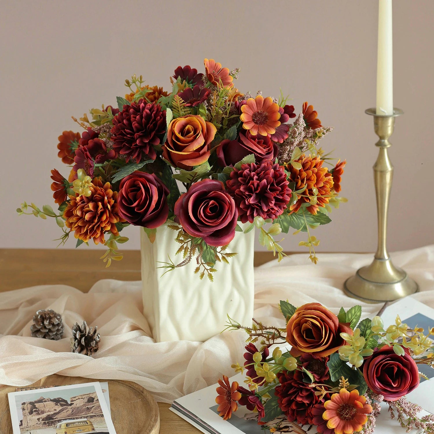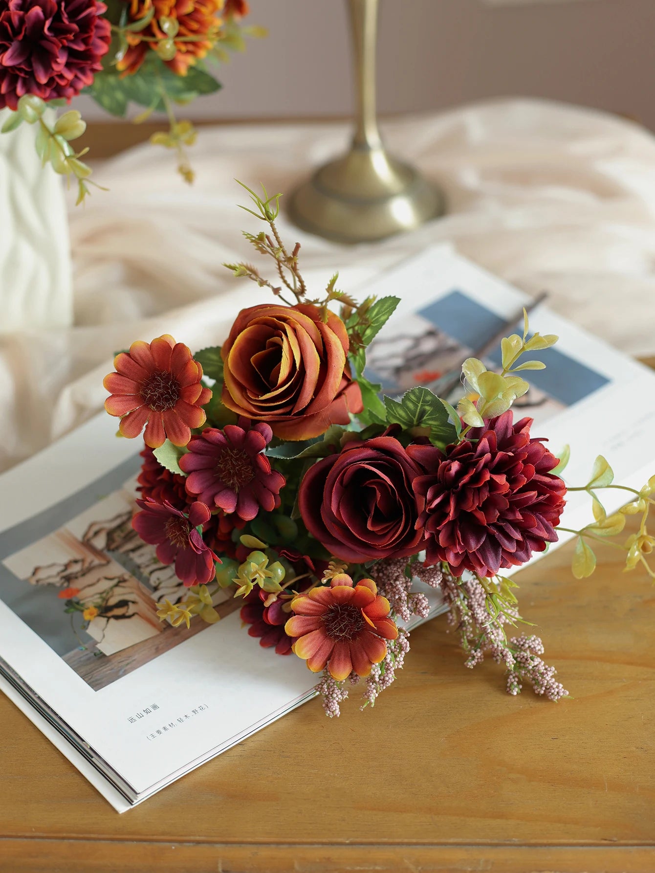 Brighten your home with our Autumn Artificial Flowers collection on Shopify, perfect for New Year’s home decoration, wedding bridal bouquets, or garden-inspired displays. This stunning set features fake silk roses and hydrangeas, crafted to mimic nature’s beauty with vibrant autumn hues. Ideal for vases, tabletops, or wedding centerpieces, these artificial flowers offer long-lasting elegance without maintenance. Whether decorating for a cozy fall gathering, a festive New Year’s celebration, or a romantic bridal event, this silk flower bouquet is a versatile must-have. Shop now to elevate your decor with this 2025 trending home decoration!