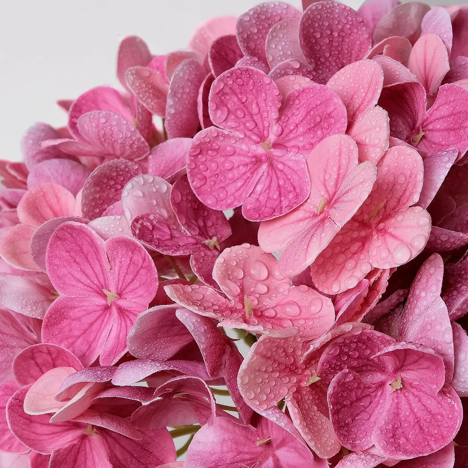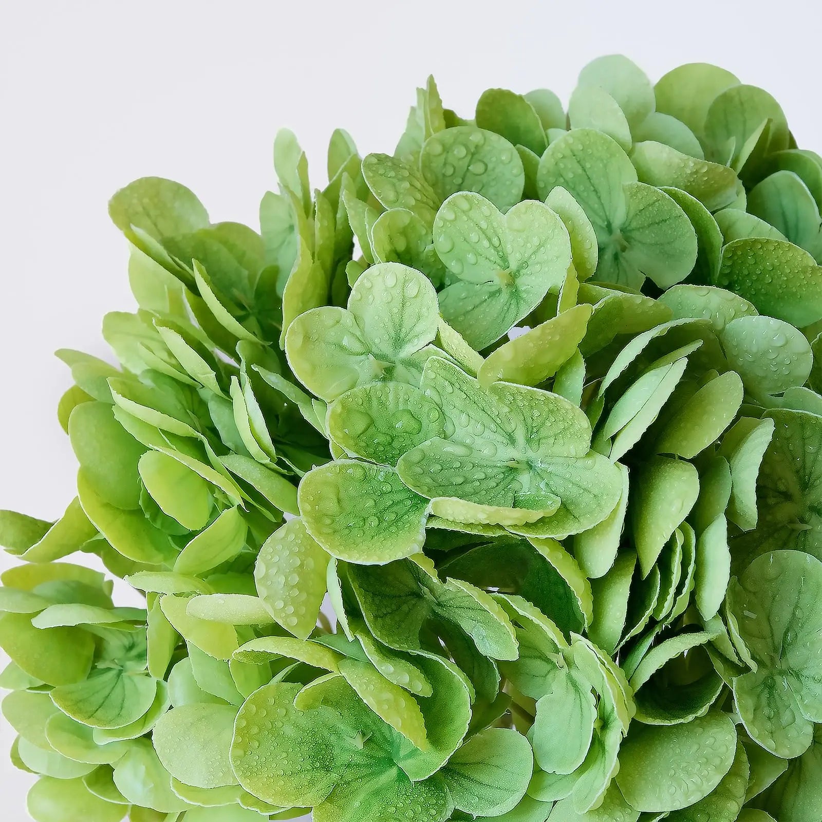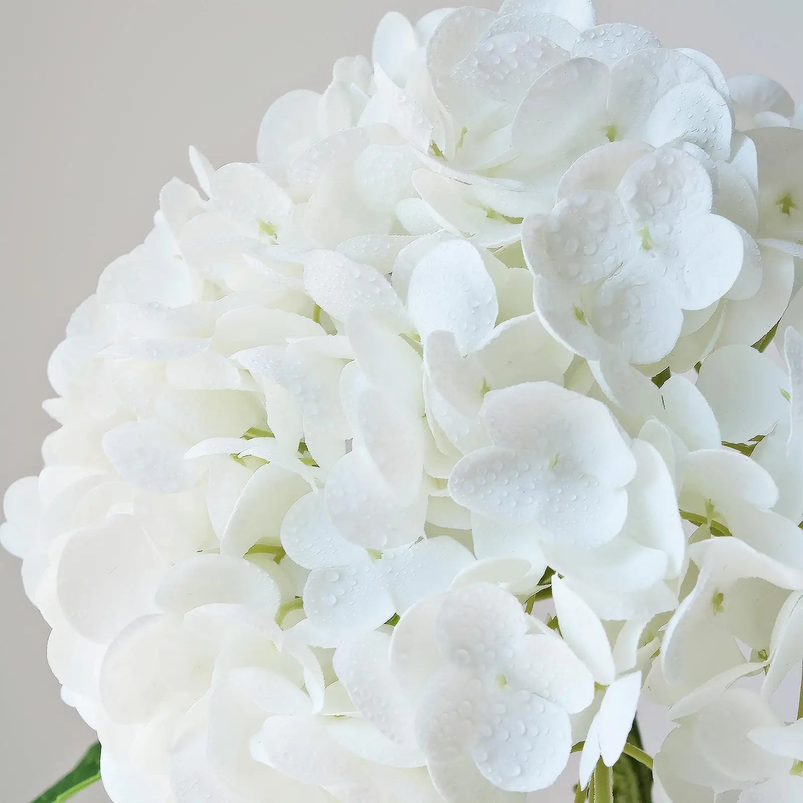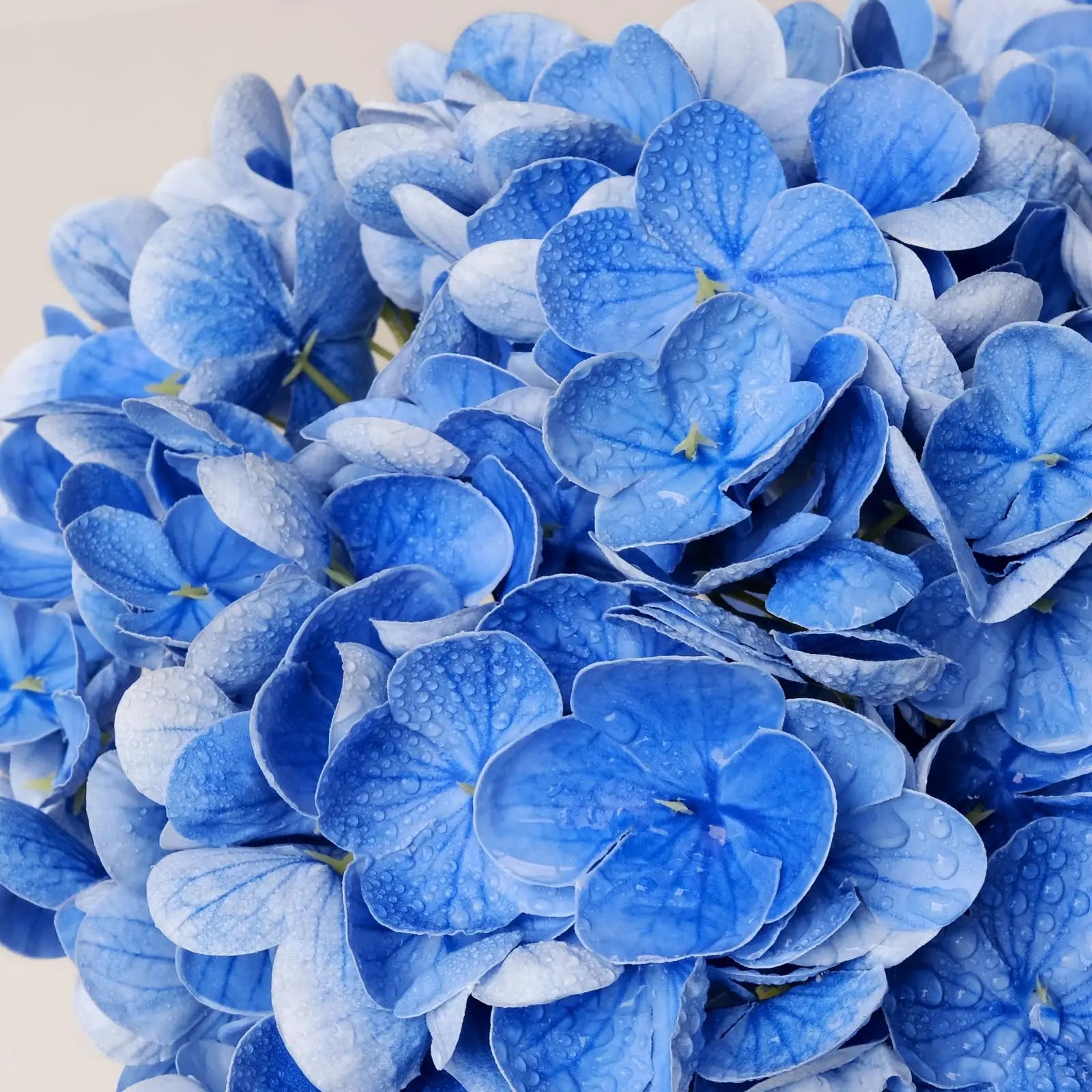 The Artificial Hydrangeas look like real, Flowers are made of soft and true touch latex,full and soft petals,No smell,safe for people and pets.More real, bigger and softer than ordinary hydrangea.After spraying water, the petals can condense water drops, can be placed outdoors, and resistant to fading.Note: The vase is NOT included!
