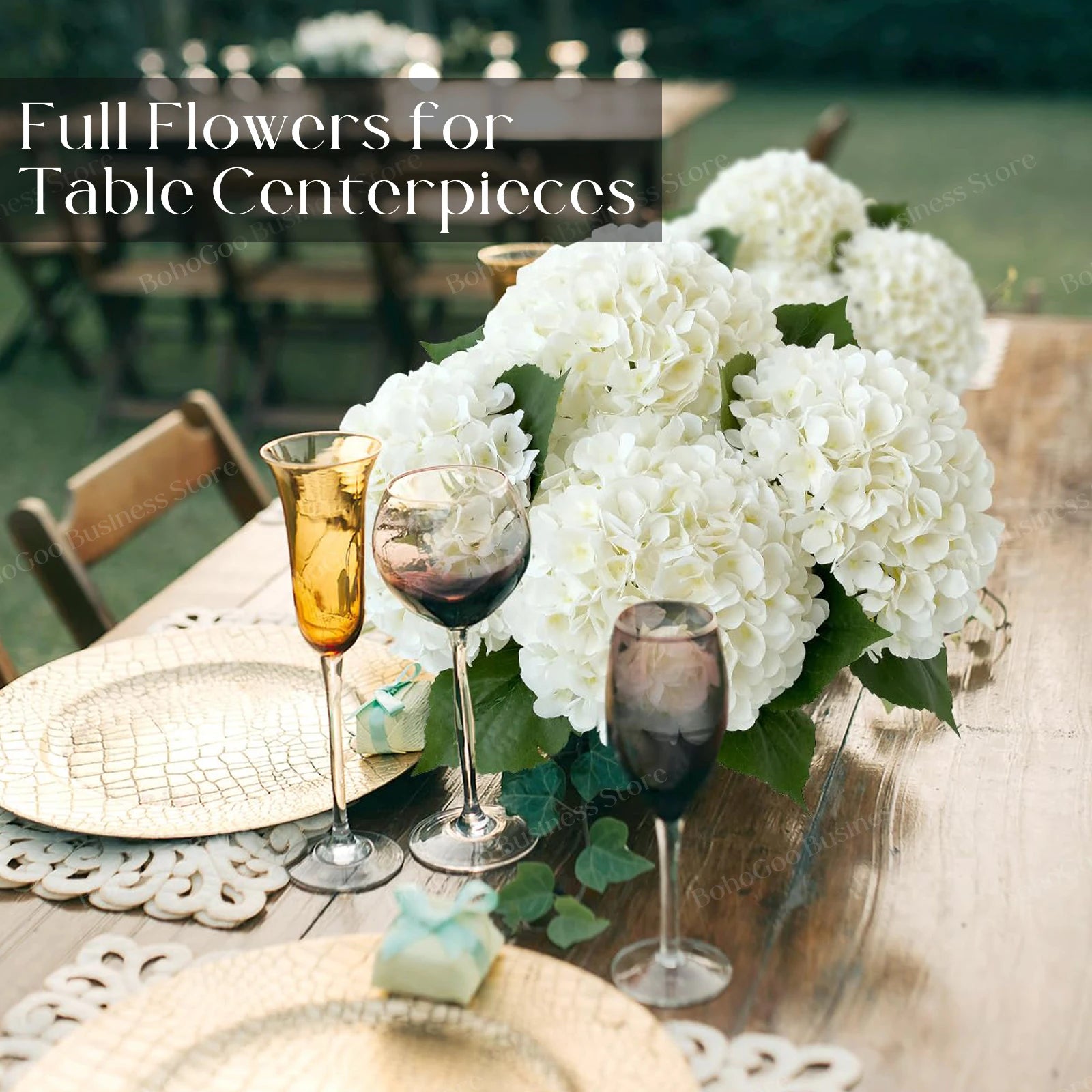 Each hydrangea bouquet has 3 leaves and 196 petals.these Hydrangea Flower bunches are handmade.Note: The petals are not made of silk Material,better than silk material.