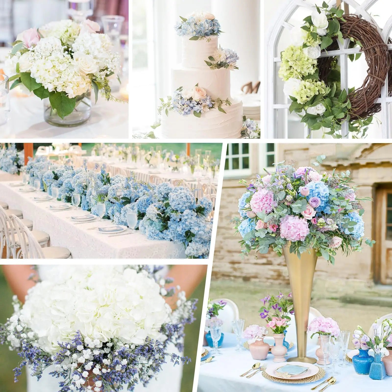 Height approx22''(56cm),Flower head 8.6''(22cm),Weight: 2.8oz(80g).The flexible and individual stem allows you to bend easily or cut shorter for DIY or fitting variety kinds of vases in a realistic way.hydrangea flower bouquet is beautiful and nature looking!