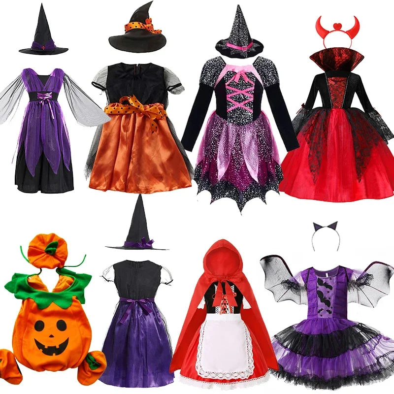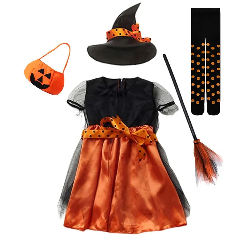 Baby Girls Halloween Witch Costume Children Cosplay Kids Dress Up Clothes