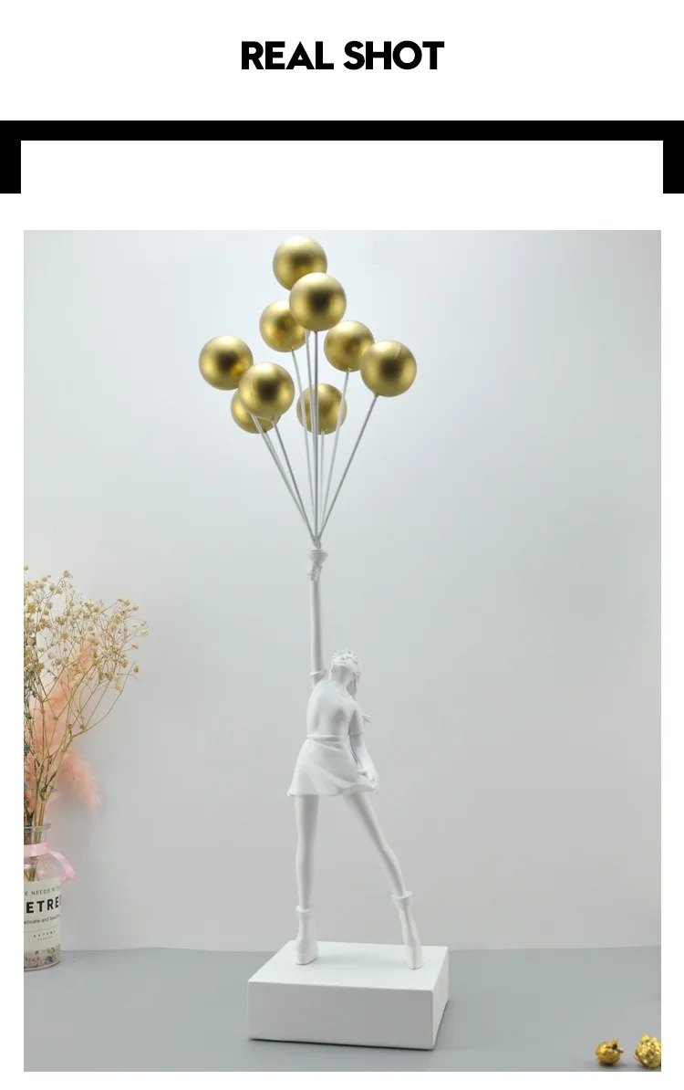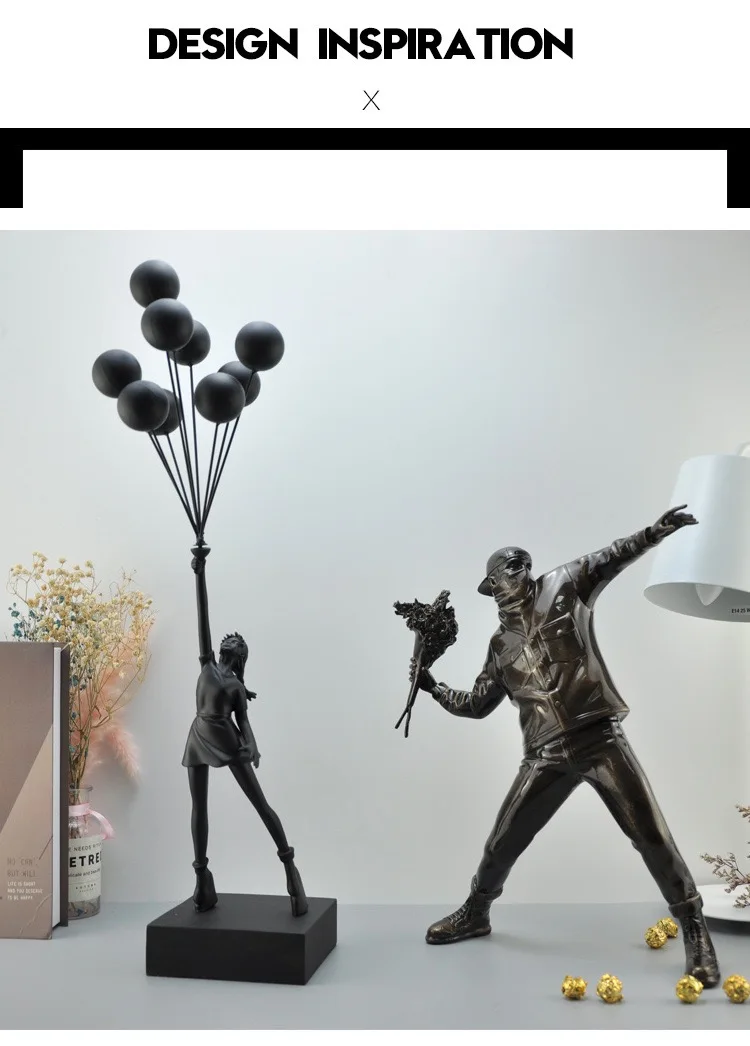 Bring the iconic artistry of Banksy into your home with this stunning “Balloon Girl” Sculpture, crafted from premium resin. Inspired by Banksy’s famous 2005 mural, this figurine captures the essence of hope, freedom, and innocence, making it a captivating addition to your living room, desktop, or office decor. The intricate design of the girl with her heart-shaped balloon blends modern street art aesthetics with light luxury style, perfect for contemporary, minimalist, or urban interiors. Ideal for art enthusiasts, collectors, or as a thoughtful gift for birthdays, housewarmings, or special occasions, this resin craft figurine adds a touch of emotional depth and sophistication to any space.