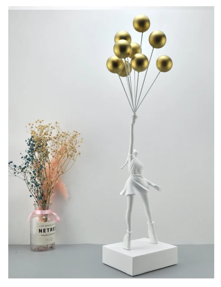 Banksy Art Balloon Girl Sculpture – Healing Flying Balloon Girl Statue