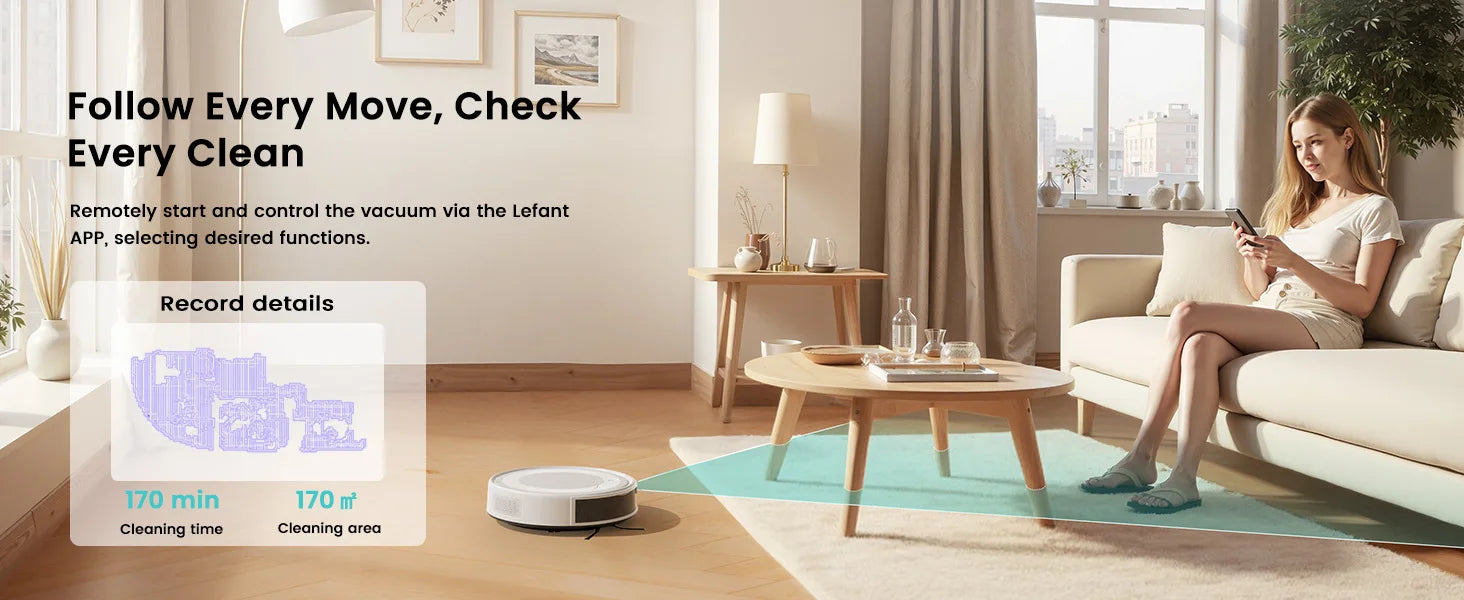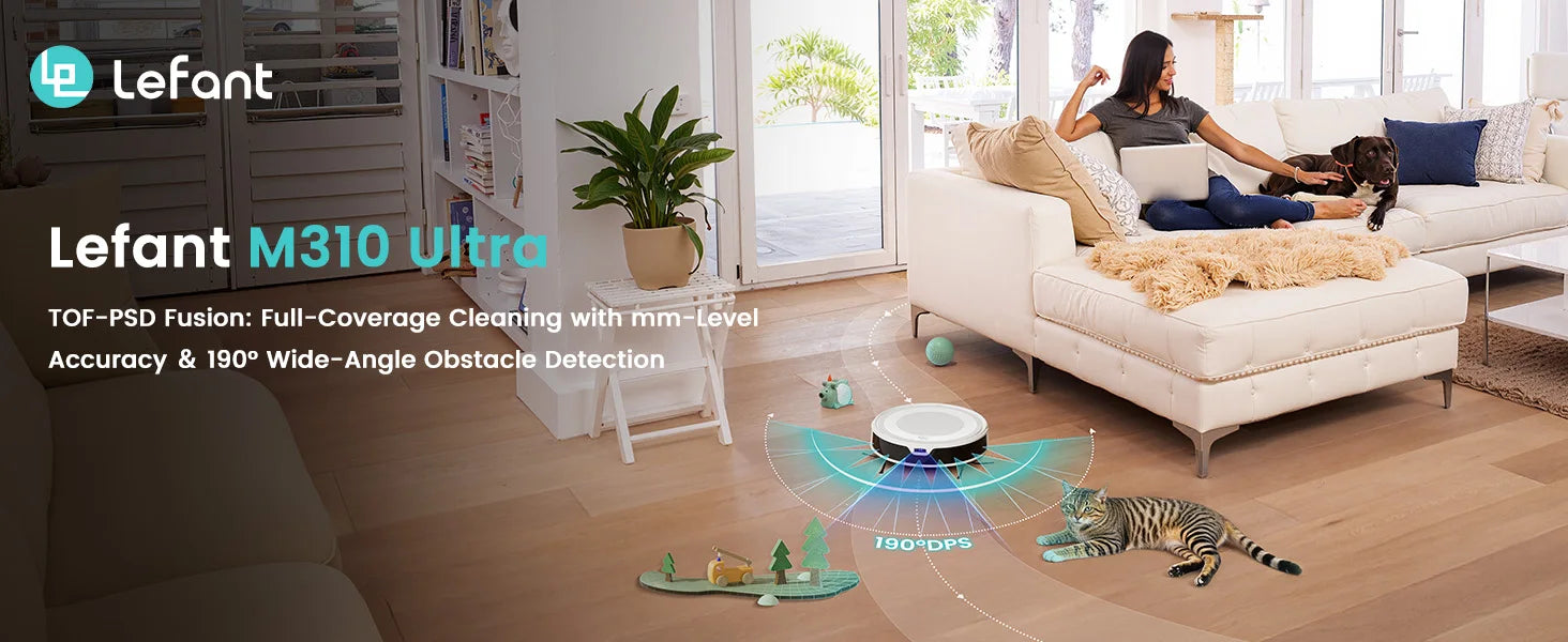 Lefant M310 Ultra Robot Vacuum Cleaner with Mop – a next-generation smart cleaning device designed for powerful and precise home care. Equipped with SoF Laser Navigation and 190° obstacle avoidance, it intelligently maps your home for efficient and safe cleaning. With an impressive 6000Pa suction power, the M310 Ultra easily lifts dust, debris, and pet hair from carpets, hardwood, and tile floors. The integrated mopping function ensures spotless, polished floors in one go. Perfect for busy households, apartments, and pet owners, this WiFi-enabled robot vacuum and mop combo delivers a deeper clean with less effort.