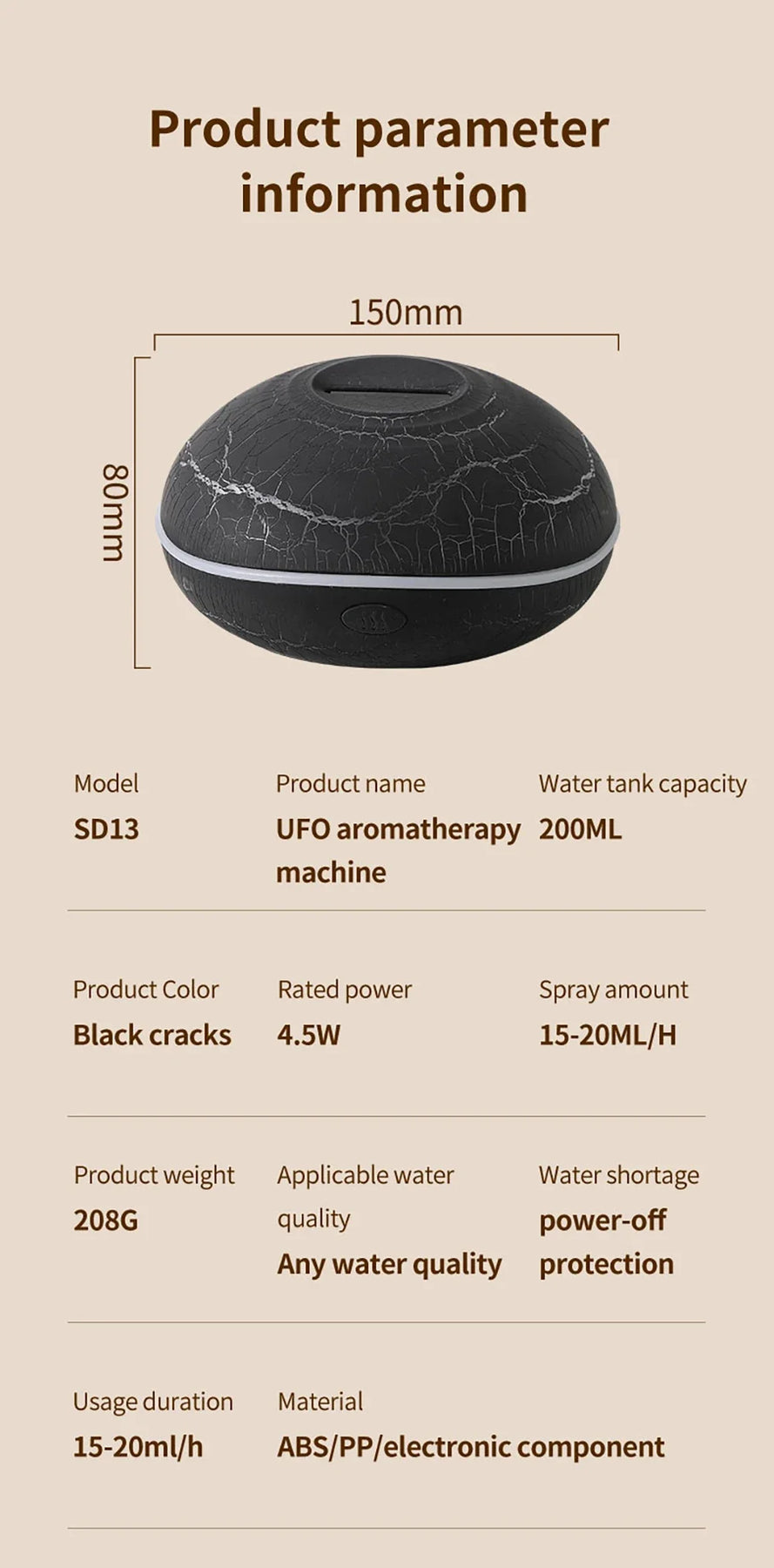 • Aromatherapy & Humidification: 200ml tank for essential oils and air moisture.