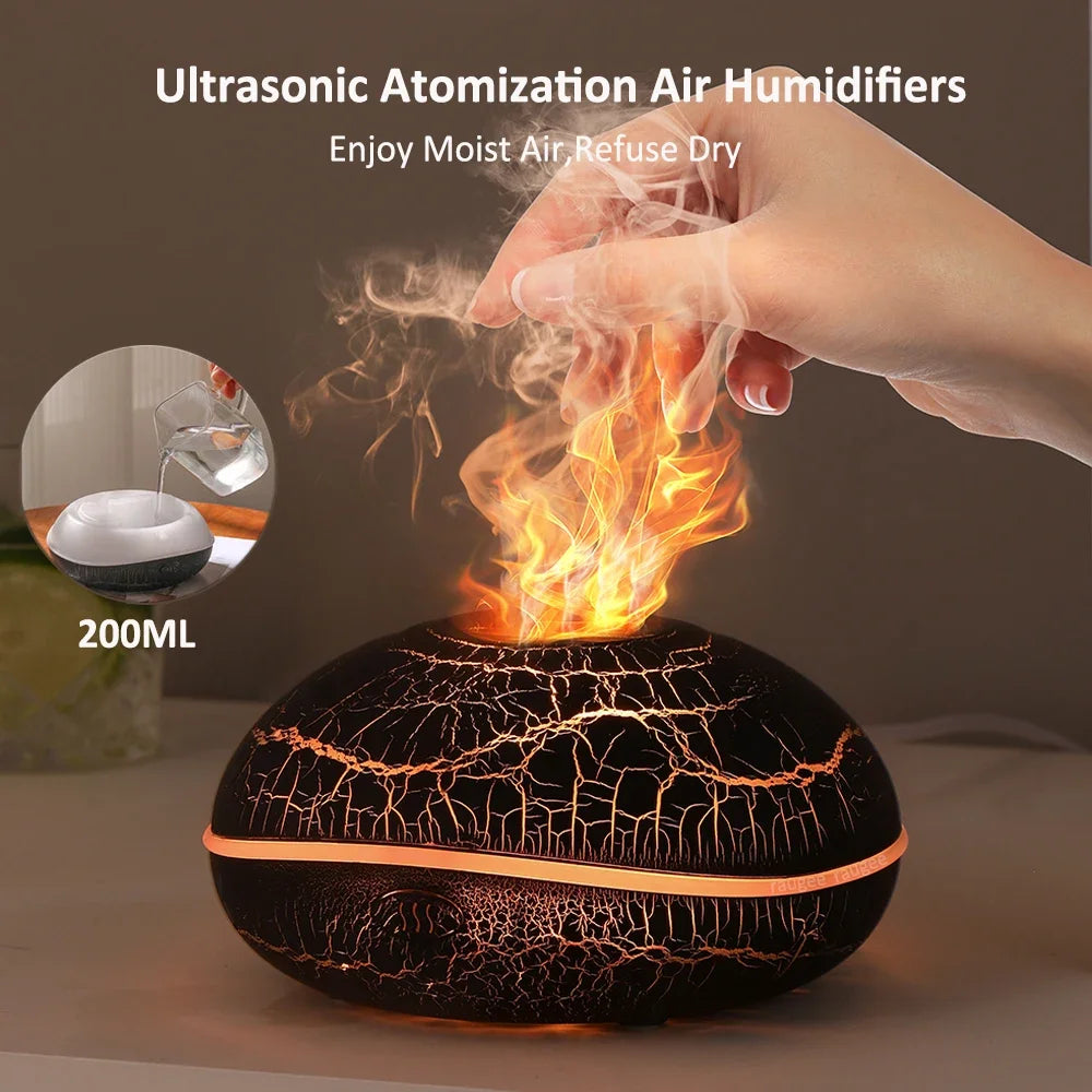 Aroma Humidifier Flame Essential Oil Diffuser is a stylish and compact ultrasonic aromatherapy diffuser that transforms your home into a serene sanctuary. Combining the benefits of an air humidifier, essential oil diffuser, and LED flame light, this mini device creates a calming ambiance with a realistic flame-effect mist. Perfect for bedrooms, living rooms, or offices, the 200ml fragrance diffuser adds moisture to dry air, infuses soothing scents, and enhances relaxation with essential oils like lavender, peppermint, or eucalyptus.