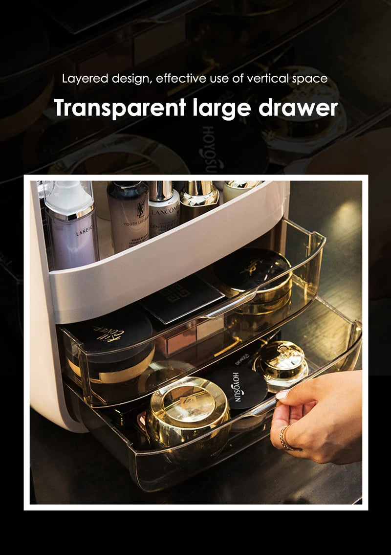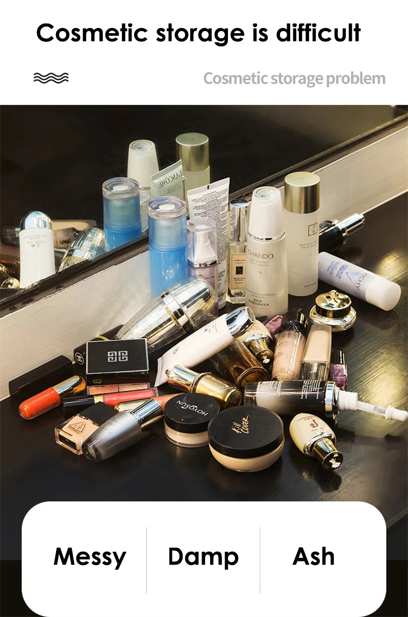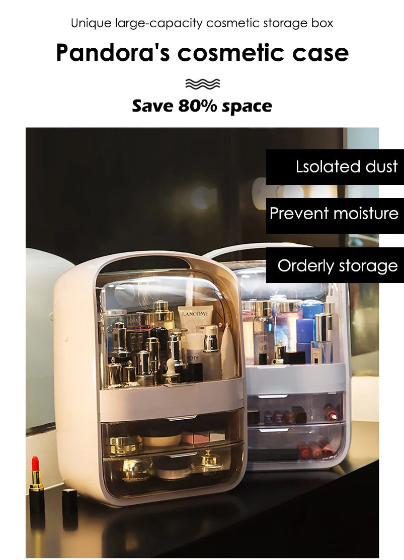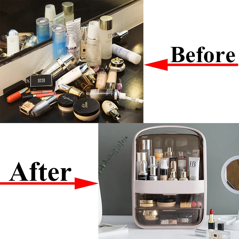 Transform your dressing table with our Luxury Cosmetic Storage Box, a large-capacity, dustproof makeup organizer designed for lipstick, skin care, and beauty essentials. This stylish desktop storage solution keeps your cosmetics neatly arranged and protected, adding elegance to your home. Perfect for organizing makeup and skincare products, this durable organizer maximizes space and enhances your beauty routine. Shop now for a clutter-free, luxurious vanity!