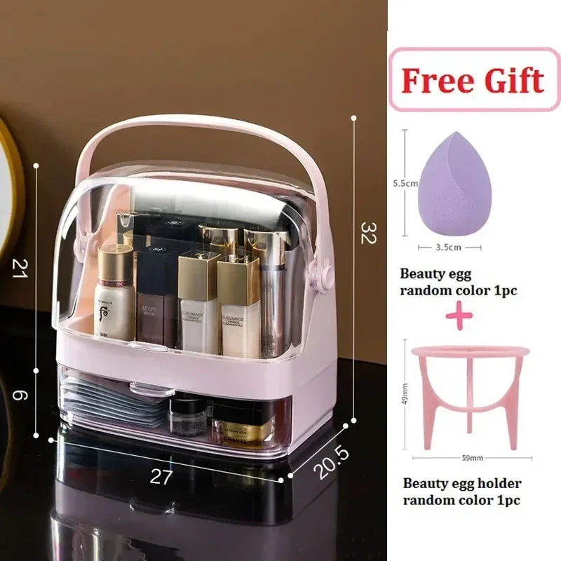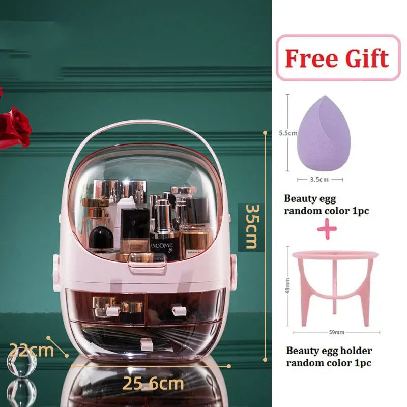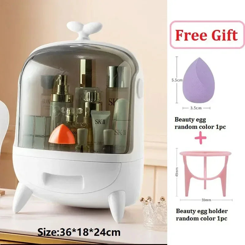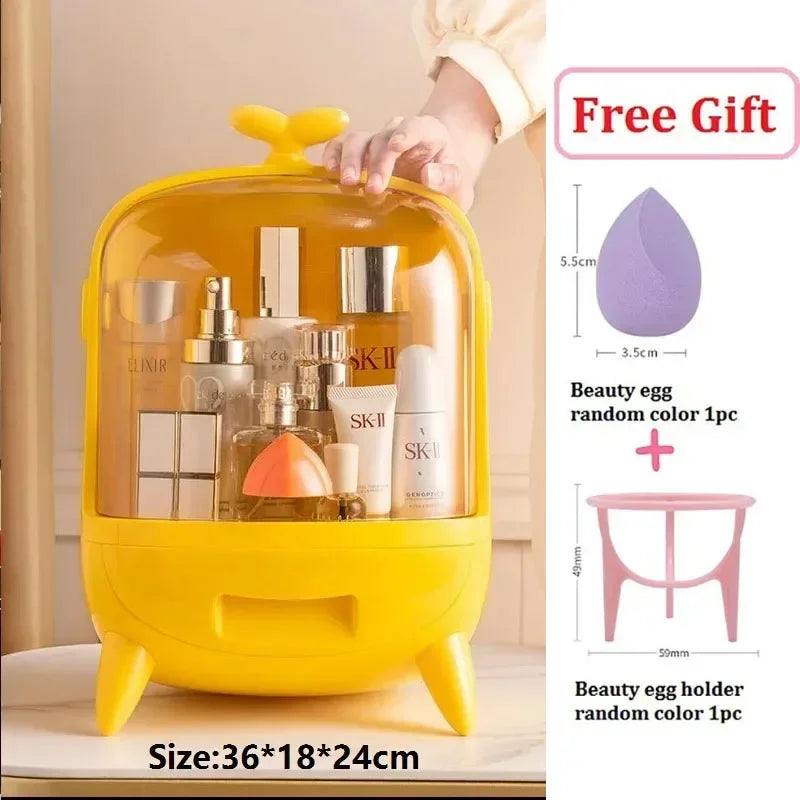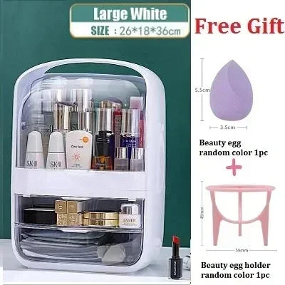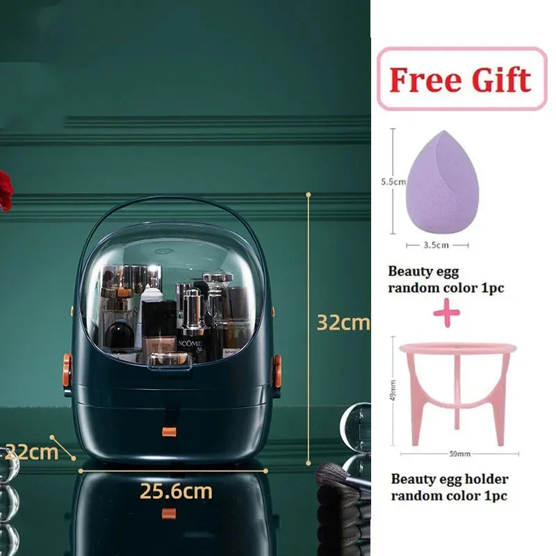 Transform your dressing table with our Luxury Cosmetic Storage Box, a large-capacity, dustproof makeup organizer designed for lipstick, skin care, and beauty essentials. This stylish desktop storage solution keeps your cosmetics neatly arranged and protected, adding elegance to your home. Perfect for organizing makeup and skincare products, this durable organizer maximizes space and enhances your beauty routine. Shop now for a clutter-free, luxurious vanity!