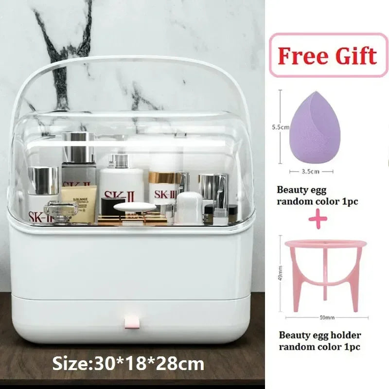 Luxury Cosmetic Storage Box - Large Capacity Dustproof Desktop Makeup Organizer for Lipstick, Skin Care, and Dressing Table