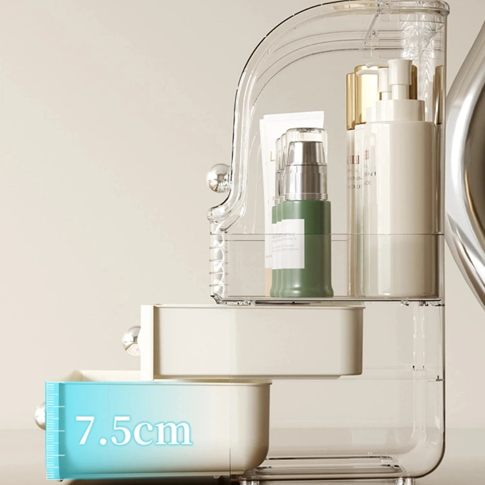 Elevate your beauty and jewelry storage with the Minimalist White Acrylic Storage Box, a sleek and versatile transparent organizer designed for cosmetics and jewelry. Crafted from high-quality, durable acrylic, this dust-proof storage box keeps your makeup, skincare products, rings, earrings, and necklaces safe from dust and damage. Its crystal-clear design with a chic white frame adds a touch of elegance to any vanity or tabletop, making it a perfect beauty product organizer for home or gifting.