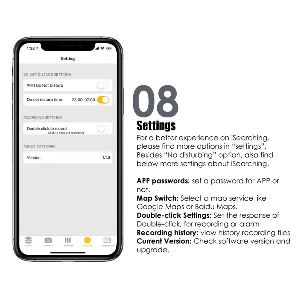 4. Intelligent alarm, when the anti-lost device exceeds the set bluetooth range, the mobile phone and the anti-lost device will alarm at the same time; when the anti-lost device is disconnected,the map location can be checked on the mobile phone.