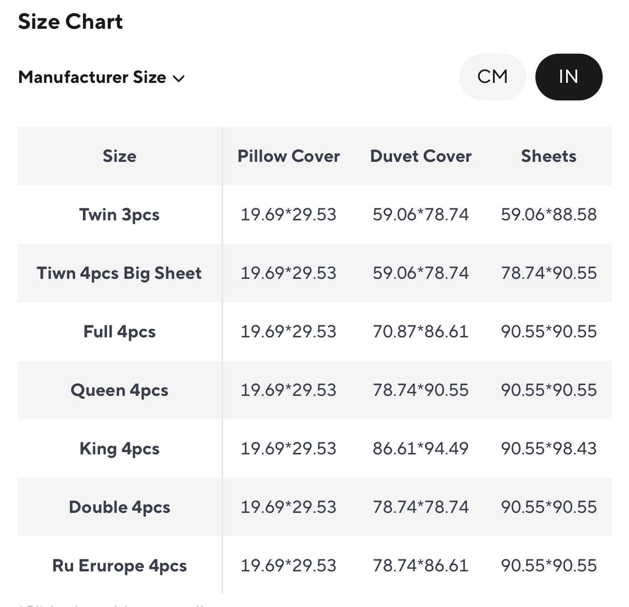 →→Ru Europe Size: