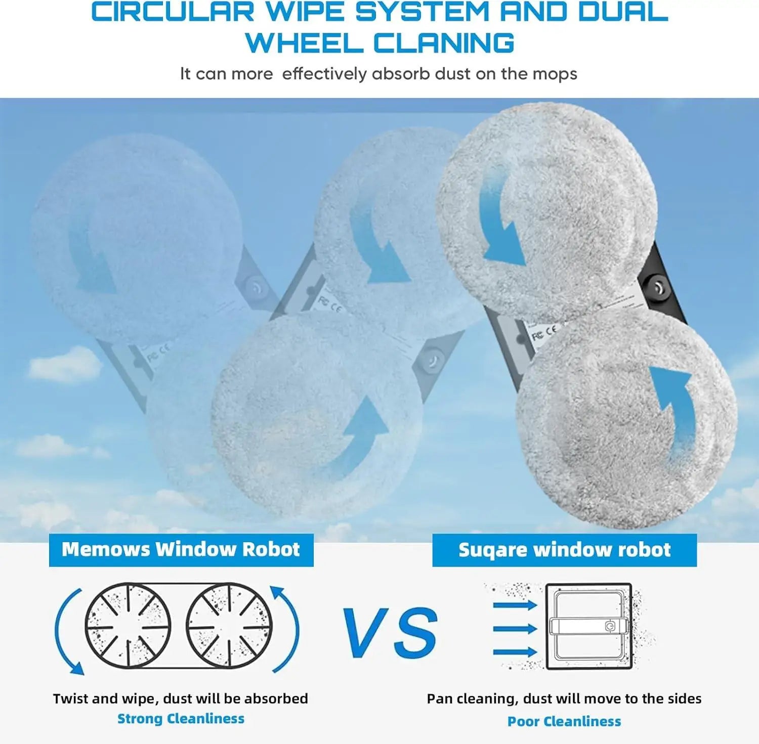 Intelligent window cleaning robot: One click start of the window cleaning robot, intelligent Z-shaped cleaning path planning, improves cleaning efficiency, and avoids missing areas. The remote control can adjust the window cleaning direction up, down, left, and right according to your needs for cleaning. High precision sensors detect edges and adjust cleaning paths, making them suitable for framed and frameless glass