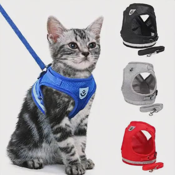 Reflective Cat Harness and Leash Set – Breathable Nylon Mesh Vest for Small Dogs, Kittens & Puppies