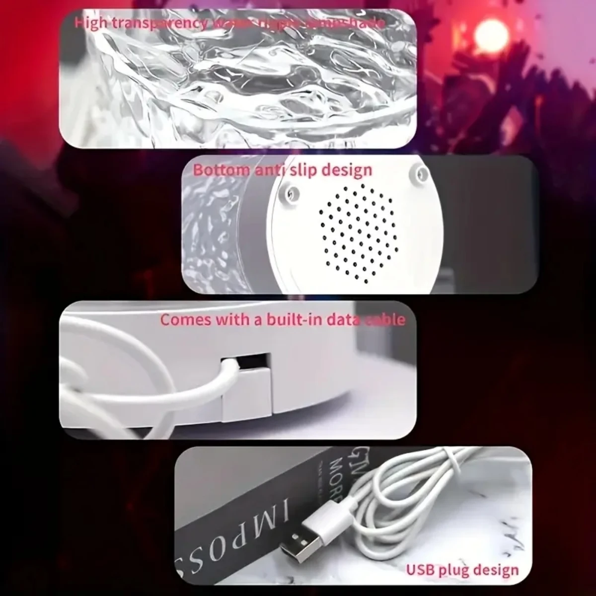 Color water ripple ambient light. Rotating Table Lamp.