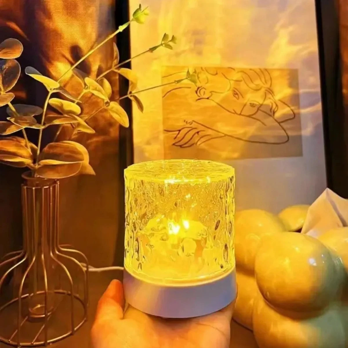 Create a magical atmosphere in any room with the RGB 16-color water ripple ambient light. Featuring a stunning ripple effect and 360° rotation, this bedside night light transforms your bedroom, living room, or workspace into a relaxing haven. With 16 vibrant RGB colors and adjustable brightness, it’s perfect for mood lighting, parties, or romantic evenings. Compact and stylish, this rotating table lamp doubles as modern home decor and a thoughtful gift for loved ones.