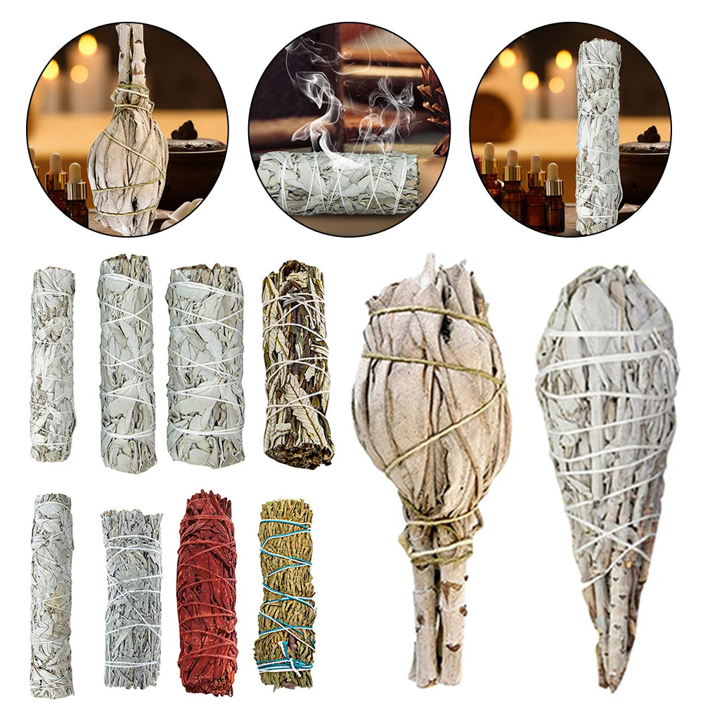 White Sage Bundle California Smudge Stick Pure Leaf Smoky Indoor Purification Grass Incense Home Office Cleansing Smoky Grass