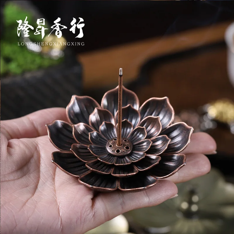 Zinc Alloy Buddhism Lotus Backflow Incense Burner – Elegant Bronze Censer for Home & Meditation