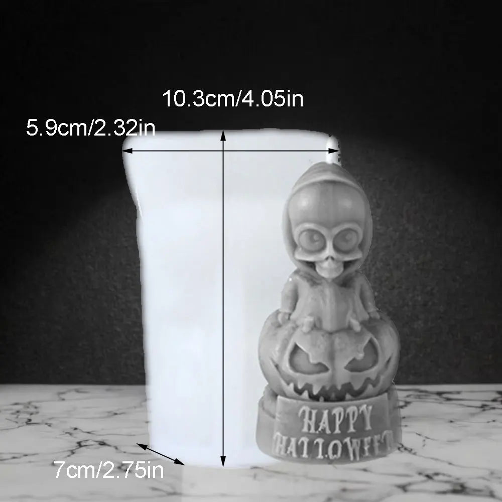 Craft spooky and stylish Halloween creations with this Ghost Pumpkin Silicone Scented Candle Mold — a detailed 3D mold featuring skeletons, pumpkins, ghosts, and zombie figures. Made from high-quality, heat-resistant silicone, this versatile mold is perfect for DIY scented candles, resin art, soap, plaster, chocolate, or even wax melts.