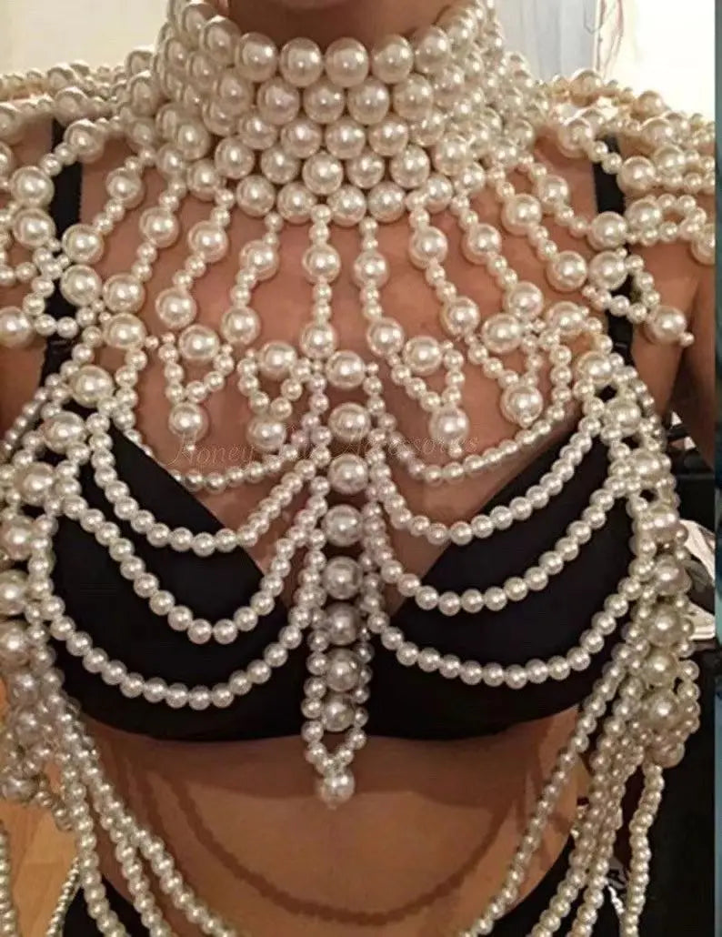 Crafted with lightweight, high-quality materials, this pearl shawl body chain ensures comfort and durability for all-day wear. Its adjustable design fits various body types, making it a versatile accessory for bold fashionistas. Ideal as a statement piece or a unique gift, this woven fashion body chain adds a touch of glamour to any look. Order now to embrace your inner goddess with this exquisite tribal jewelry!